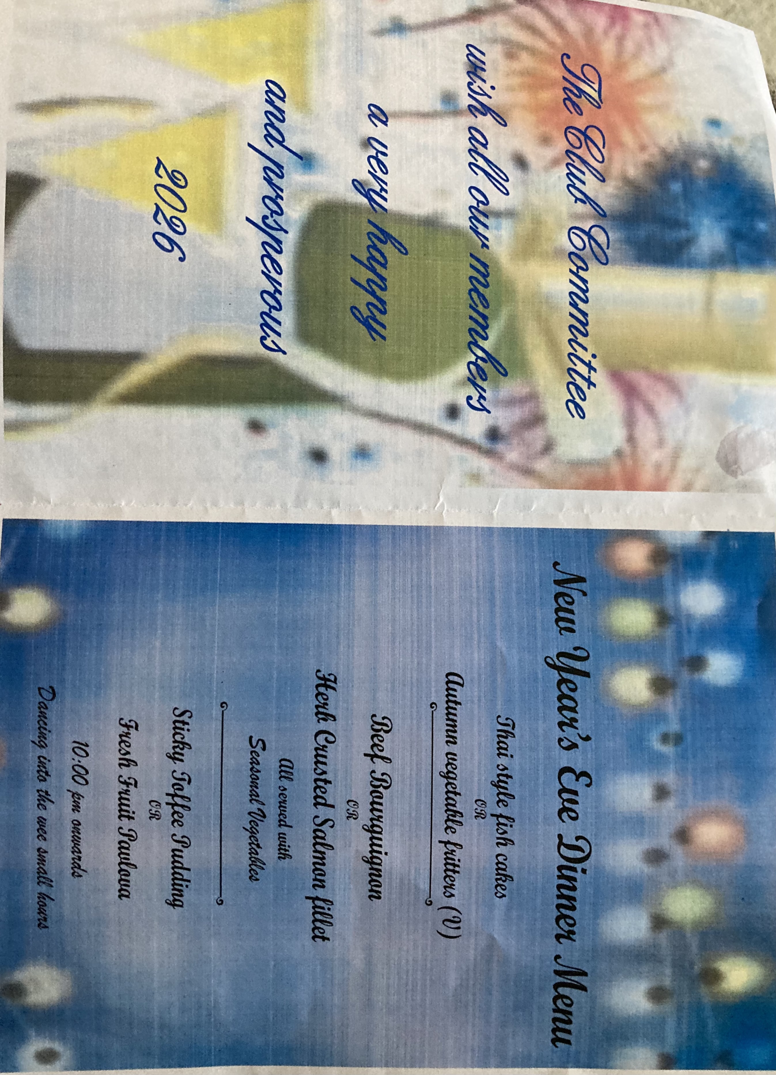 The Club, hosted it's annual New Years Eve Party, 41 people enjoyed a three course meal, consisting of sharing platter starters, followed by Pork in a leek & mushroom sauce with seasonal veg and a host of delicious homemade pudding, along with some fun table games, followed by dancing from 10.30, at Midnight we saw in the New Year with a glass of fizz, party poppers and balloons!
