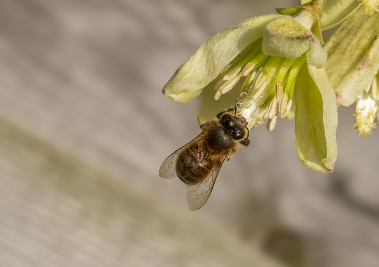 Yesterday's sun had a real warmth to it and the insects responded visiting this Clematis cirrhosa flowering against a south-facing fence. I am pretty certain that it is a Buff-tailed Bumblebee but was very small for a Queen. The most numerous visitors were honey bees stocking up on nectar and pollen. As always a few blow flies around (Calliphora vicina) - one is covered in pollen illustrating their importance as pollinators. (The warm sunshine and insect visitors were appropriate for the day of Richard Revel's funeral emphasising his very large contribution to entomology and his delight at any glimpse of the approach of spring)