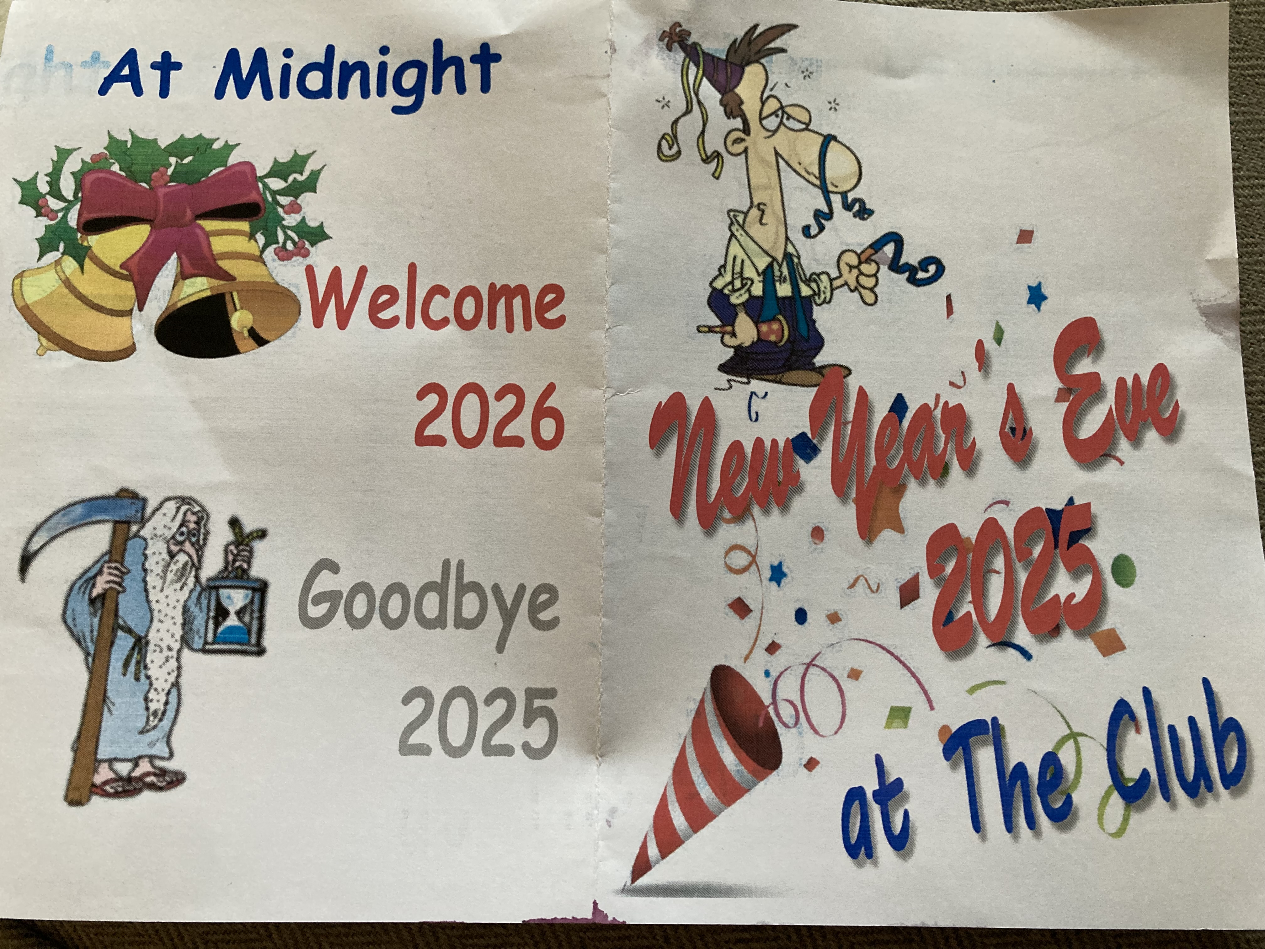 The Club, hosted it's annual New Years Eve Party, 41 people enjoyed a three course meal, consisting of sharing platter starters, followed by Pork in a leek & mushroom sauce with seasonal veg and a host of delicious homemade pudding, along with some fun table games, followed by dancing from 10.30, at Midnight we saw in the New Year with a glass of fizz, party poppers and balloons!