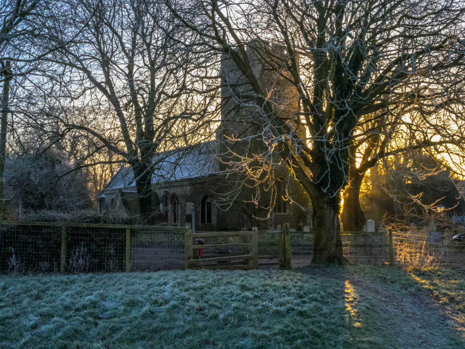 The night of 10/11 January was cold (minus 3 to 4 degrees) and clear so there was a frost on the Saturday morning and the sunrise was very colourful. Here a few pictures from a walk around the Green and across Church Meadow