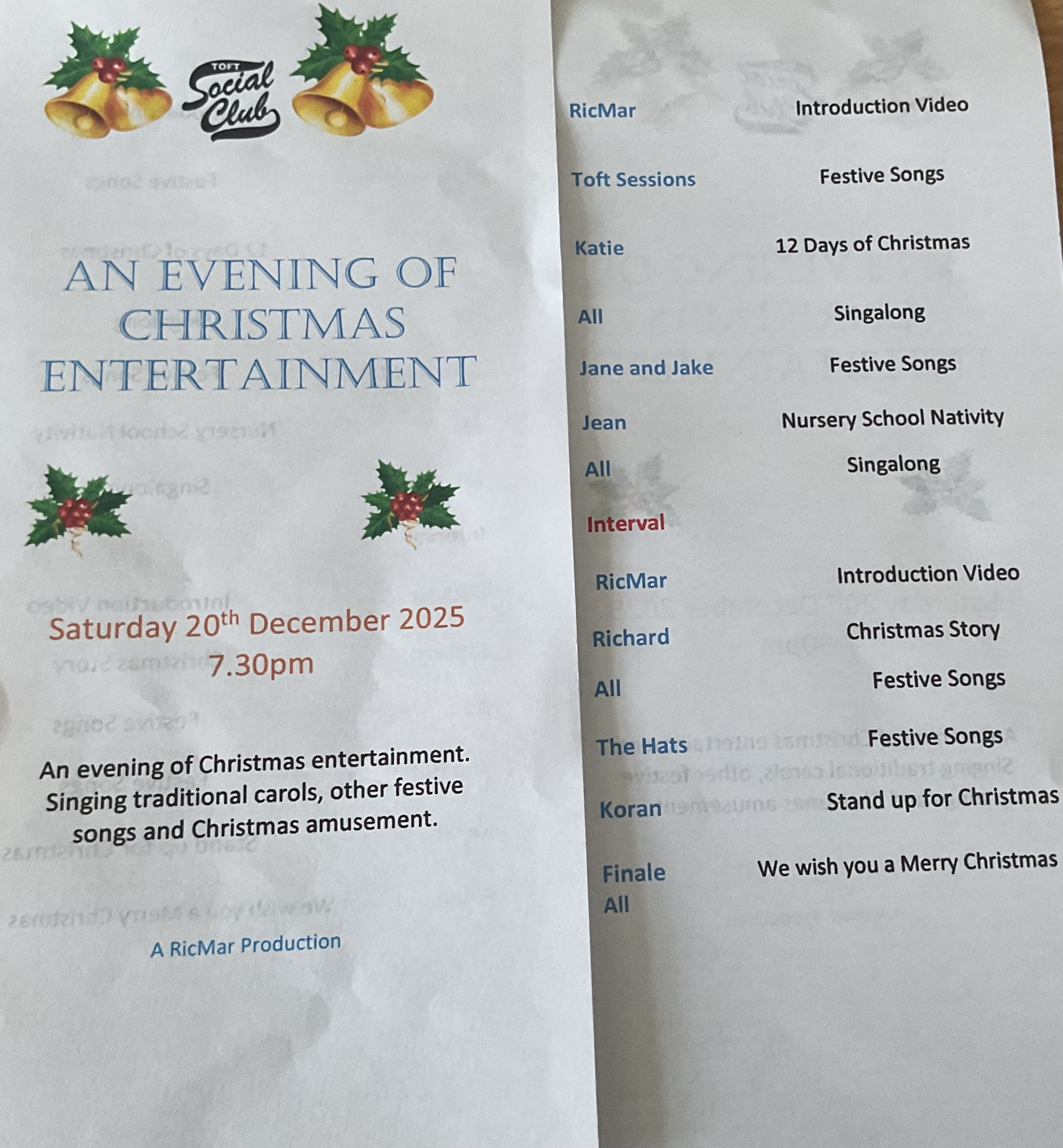 The annual Christmas Draw took place on Christmas Eve. There were lots of prizes including a "first prize" of a £100 John Lewis Voucher and second prize of £50 M&S voucher. The John Lewis voucher was won by Emma Mitchell.